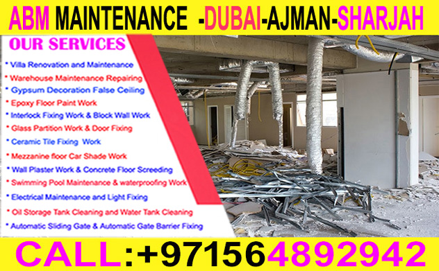 Home-office-Maintenance Services is one of thefastest growing companies in Ajman providing home Maintenance services in ABM Building Maintenance Services ,is a firm specialized in all types of Interior & Exterior Decoration Paintingwork- Electrical Work-PlumbingWork-Warehouse Epoxy Floor Paint -Floorwaterproofing works – Gypsum carpenter& False Ceiling Work- we provide facility Maintenance services indifferent business sectors like +971564892942
