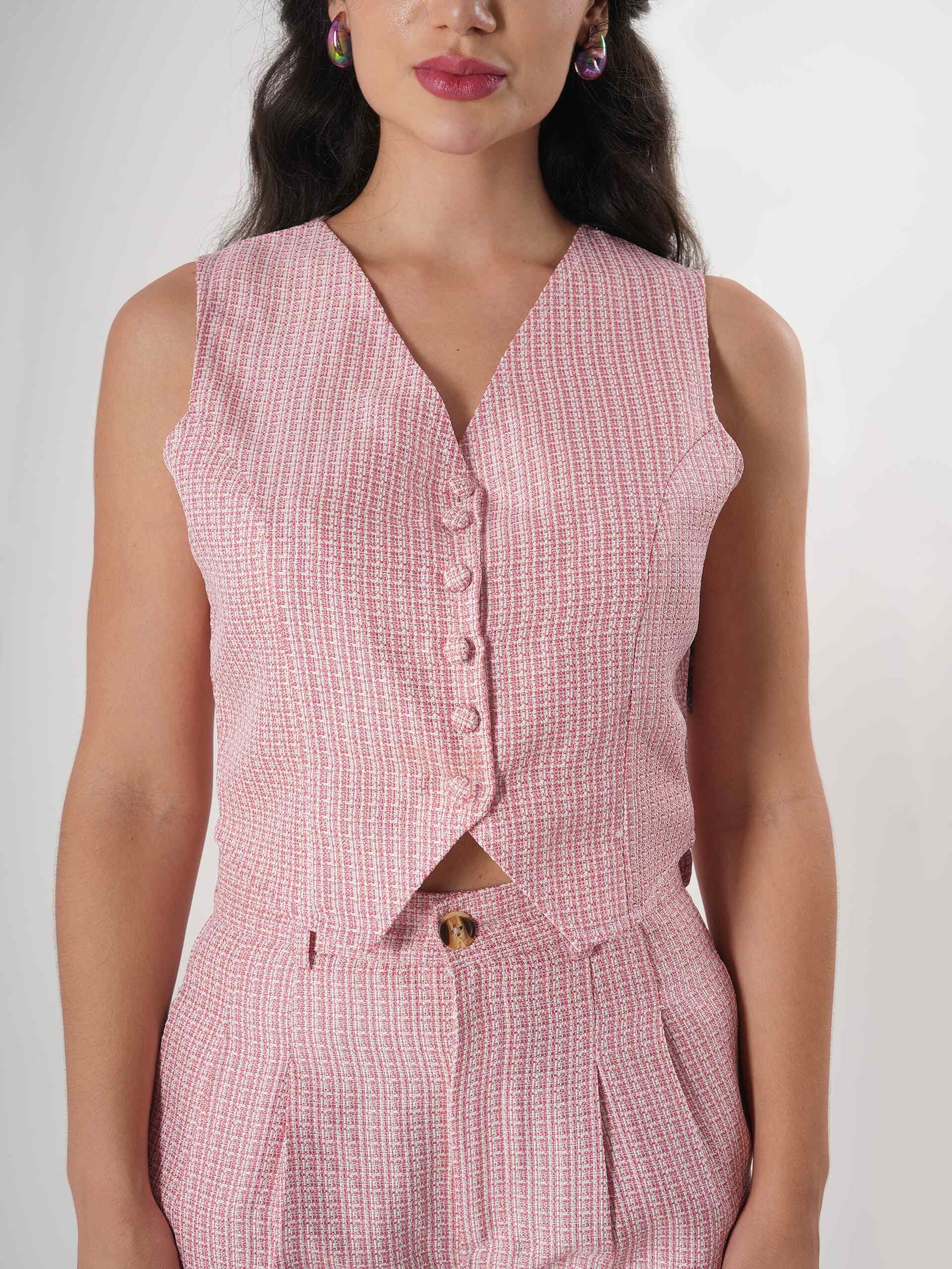 Pink & White Co Ord Set for women β Chic & Elegant! πΈβ¨ Stay stylish with this V-neck sleeveless waistcoat top and slim-fit bottoms, crafted from breathable cotton with a unique weaved texture. Perfect for effortless elegance and comfort. β Zip closure & pockets β Light pink & white β Sizes XS-XXL π COD & Easy Exchange Available! Order now! π #CoOrdSet #SummerStyle