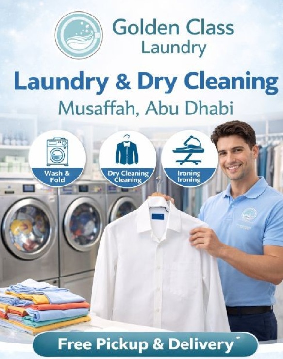 Golden Class Laundry serves new customers in Mussafah with expert laundry and dry cleaning services. Get quality results with free pickup & delivery right to your doorstep.